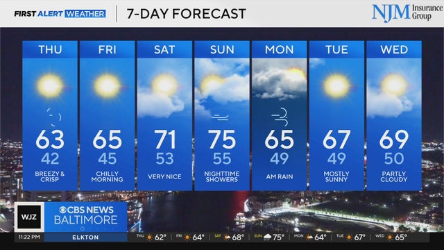 Brisk, cooler weather for Thursday in Maryland