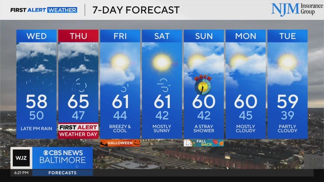 Marylanders can expect to see stormy, cloudy weather Wednesday evening into Thursday.