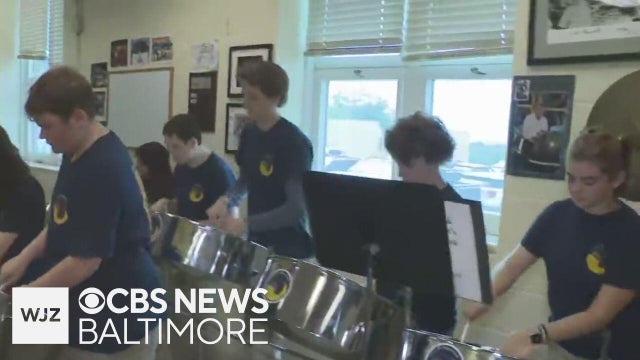 Marty Bass checks out the Catonsville High School steel drum band.