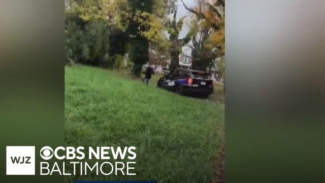 A Baltimore Police officer was suspended without pay, department officials said, after he was seen in a viral video chasing someone with a police cruiser.