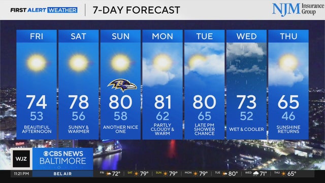 Baltimore's stretch of seasonable weather continues, with low humidity and mild afternoons holding steady through Friday.