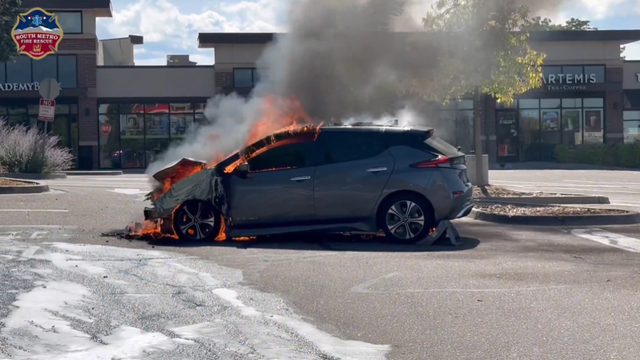 A number of businesses in Littleton temporarily evacuated Sunday when an electric vehicle caught fire in the parking lot.