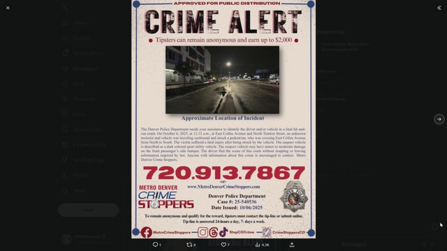 Denver police have issued a crime alert for Monday's deadly hit-and- run at Colfax and Trenton.