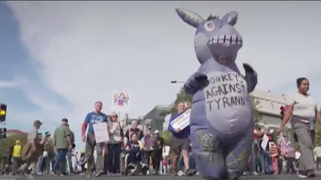 Thousands of protesters gathered in cities across the U.S. Saturday in an effort called the No Kings rallies, protesting the Trump administration's policies. CBS News has this report on the gatherings and reactions.