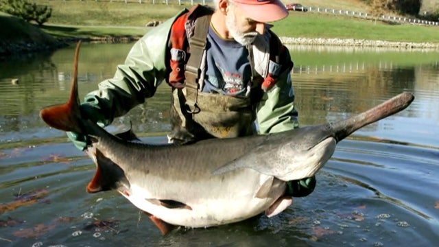 For more than 100 million years, the American paddlefish have called the Mississippi River home, but their numbers and habitat have declined. Ian Lee has details.