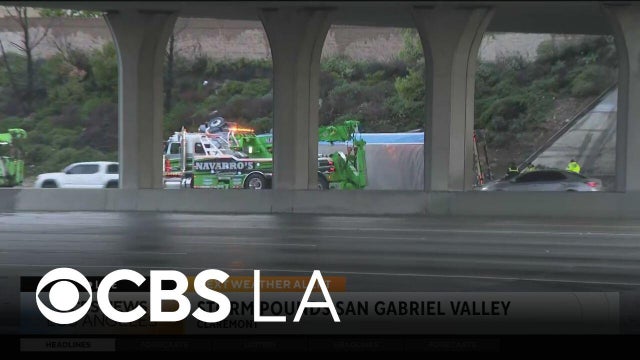 Rain is making the commute difficult for many in Southern California, with the San Gabriel Valley hit hard, as a big rig overturns on the 210 Freeway.