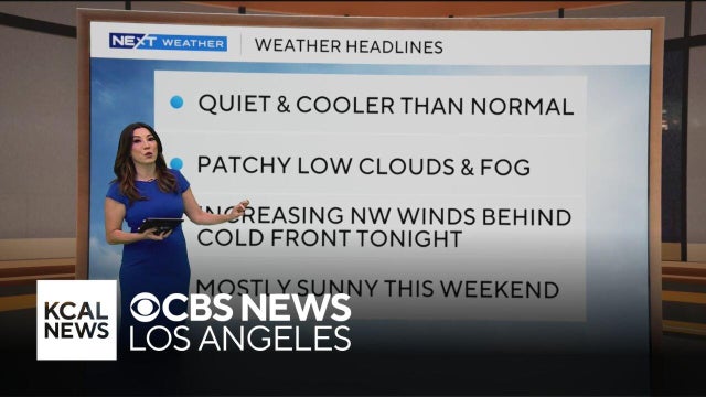 Conditions will be quiet and cooler than normal on Thursday. Patchy low clouds and fog will remain throughout the morning with increasing winds behind a cold front at night.