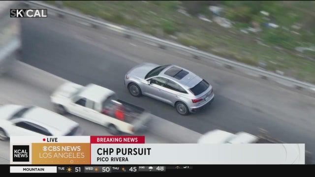 A silver Audi raced at high speeds along the 60 and 605 Freeways before pulling into a Downey parking structure where one of two men inside was taken into custody