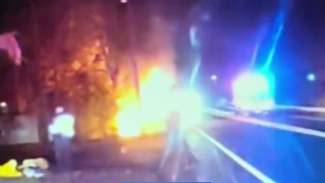 Two police officers in New Jersey rescued an unconscious man from a burning car, pulling him out just minutes before the vehicle was engulfed in flames. The driver is recovering.