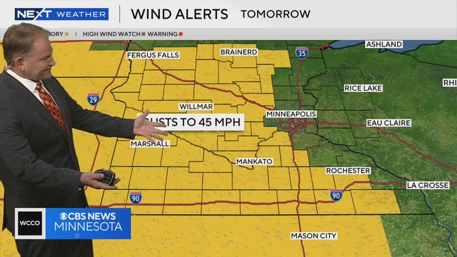 The majority of Minnesota will be under a wind advisory on Tuesday, with gusts of up to 45 mph possible, Next Weather meteorologist Chris Shaffer says.
