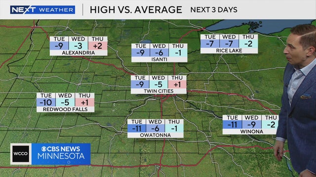 Tuesday will be cooler with our highs likely stuck in the upper-40s. That is below average, WCCO meteorologist Mike Augustyniak reports.