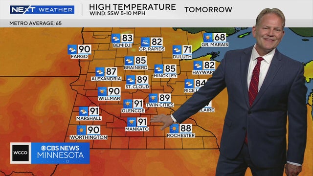 WCCO meteorologist Chris Shaffer says tomorrow we'll take a swing at 90, which would tie the daily record high for the day.