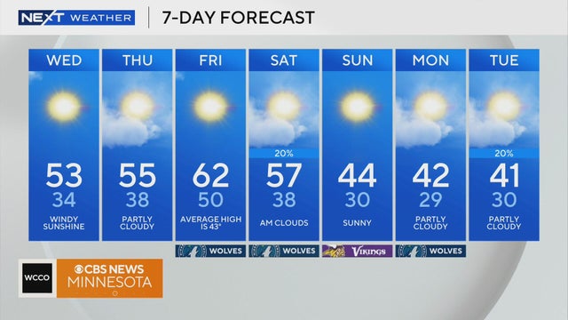 Wednesday will be dry and breezy at times in the Twin Cities, with mild temperatures.