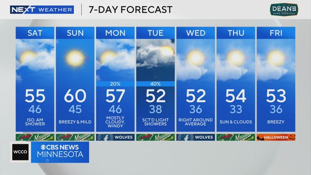 Highs will be in the 50s across Minnesota on Saturday with showers early, according to Next Weather Meteorologist Mike Augustyniak.