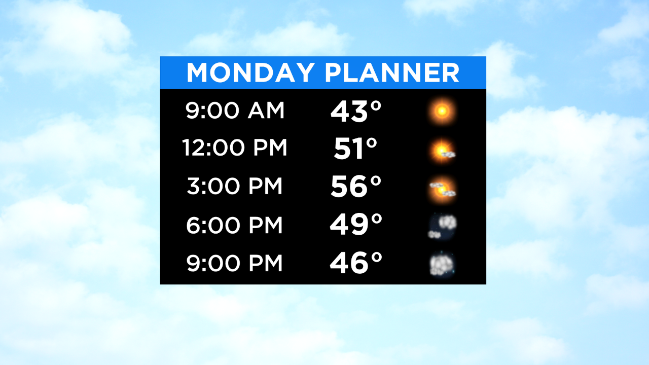 We have a crisp & bright start to the work week with temps in the 30s to around 40 here in NYC. Expect bright skies through much of the afternoon with some clouds filling in late..but not before temps get into the mid & upper 50s once again.