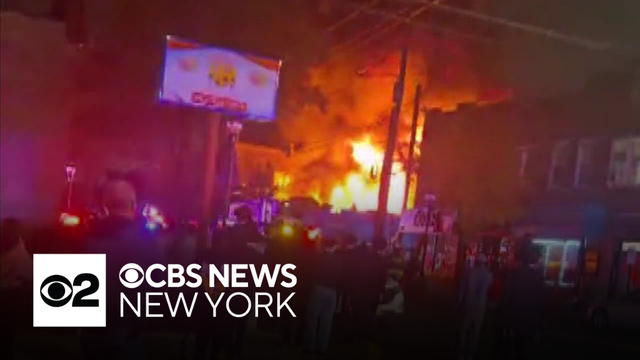 Firefighters are still on the scene battling hot spots, and people in the area are being asked to keep their windows closed and avoid the smoke. CBS News New York's Christina Fan reports.