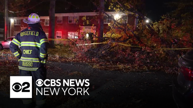 The tree came crashing down during a wind advisory for much of the Tri-State Area on Wednesday. CBS News New York's Christina Fan reports.