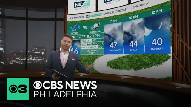 A few showers linger around overnight, mainly north of Philadelphia, with a low chance of a rumble of thunder. Andrew Kozak has the forecast.