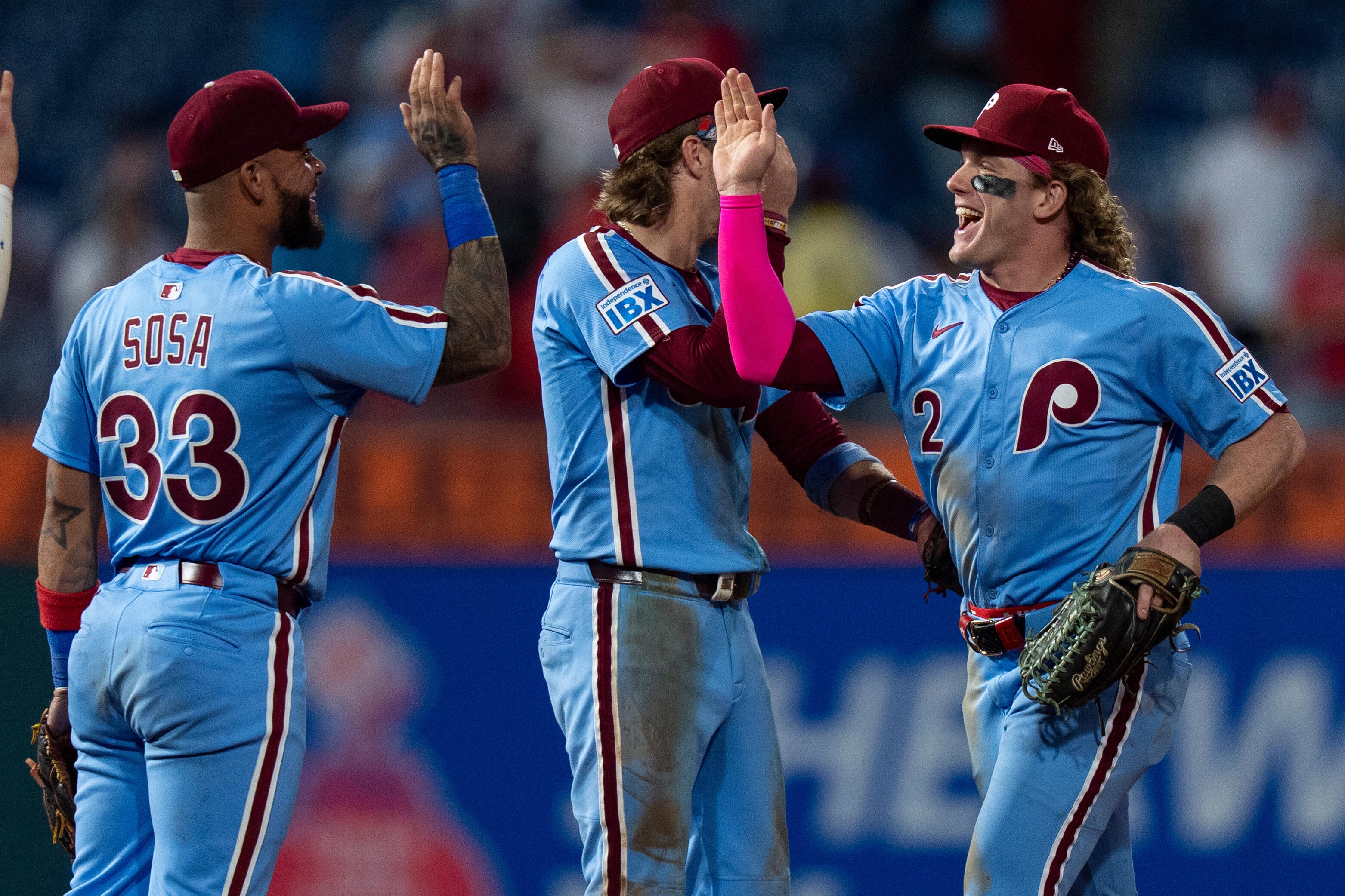 After hitting a team-record eight homers Wednesday night in an 11-1 victory that wrapped up a first-round bye, the Phillies scored the lone run on Alec Bohm's first-inning groundout.