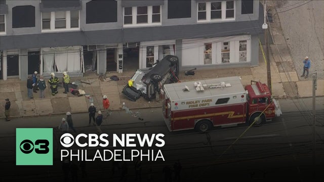 A serious crash on Chester Pike in Delaware County, Pennsylvania, on Monday morning sent five people to the hospital and caused a gas line to rupture, according to police. CBS News Philadelphia's Madeleine Wright reports.