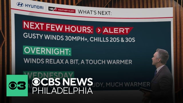 Bill Kelly says Tuesday night in the Philadelphia region will be filled with gusty winds with chills in the 20s and 30s.