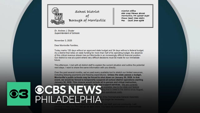 In a letter to parents Monday afternoon, the Morrisville superintendent says the district may be forced to temporarily suspend all school operations on Jan. 30 unless the Pennsylvania legislature passes a budget.