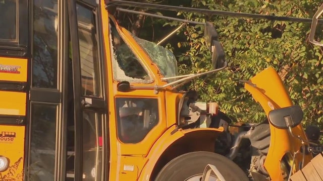 No kids were on the bus at the time of the crash, but the driver was taken to the hospital.