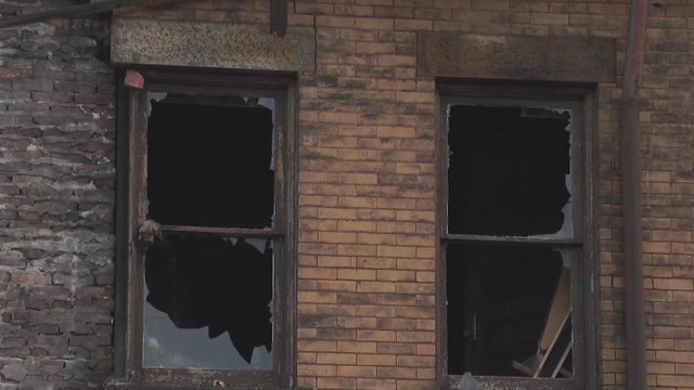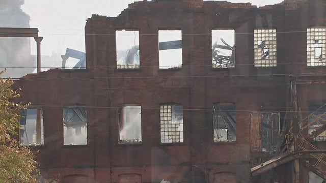 Small fires continue to burn under the rubble of the historic Bantam Jeep building where firefighters say they can't put out remaining hotspots due to how unstable the building is.