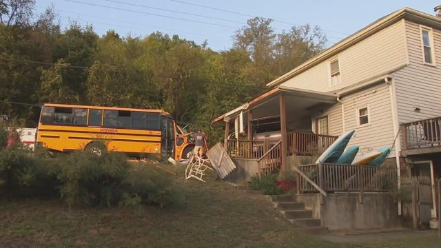 A school bus driver crashed into a home in Forward Township on Monday.