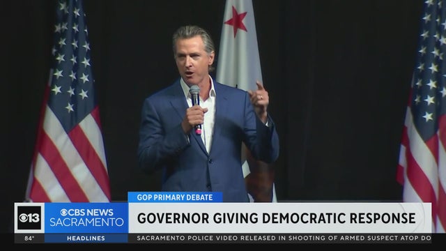 California Gov. Gavion Newsom is also in Southern California on Wednesday ating on behalf of President Biden. Newsom spoke with CBS News earlierin the day saying former President Donald Trump is running away with the nomination right now and calling the candidates debating in the primary the JV team.