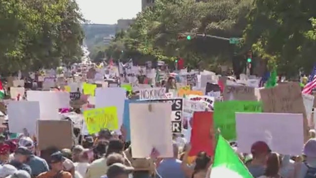 Large protests also took place in Austin, where Governor Greg Abbott had deployed Texas National Guard troops in anticipation of potential unrest. However, no violence or property damage was reported, and the estimated crowd of 30,000 remained peaceful.